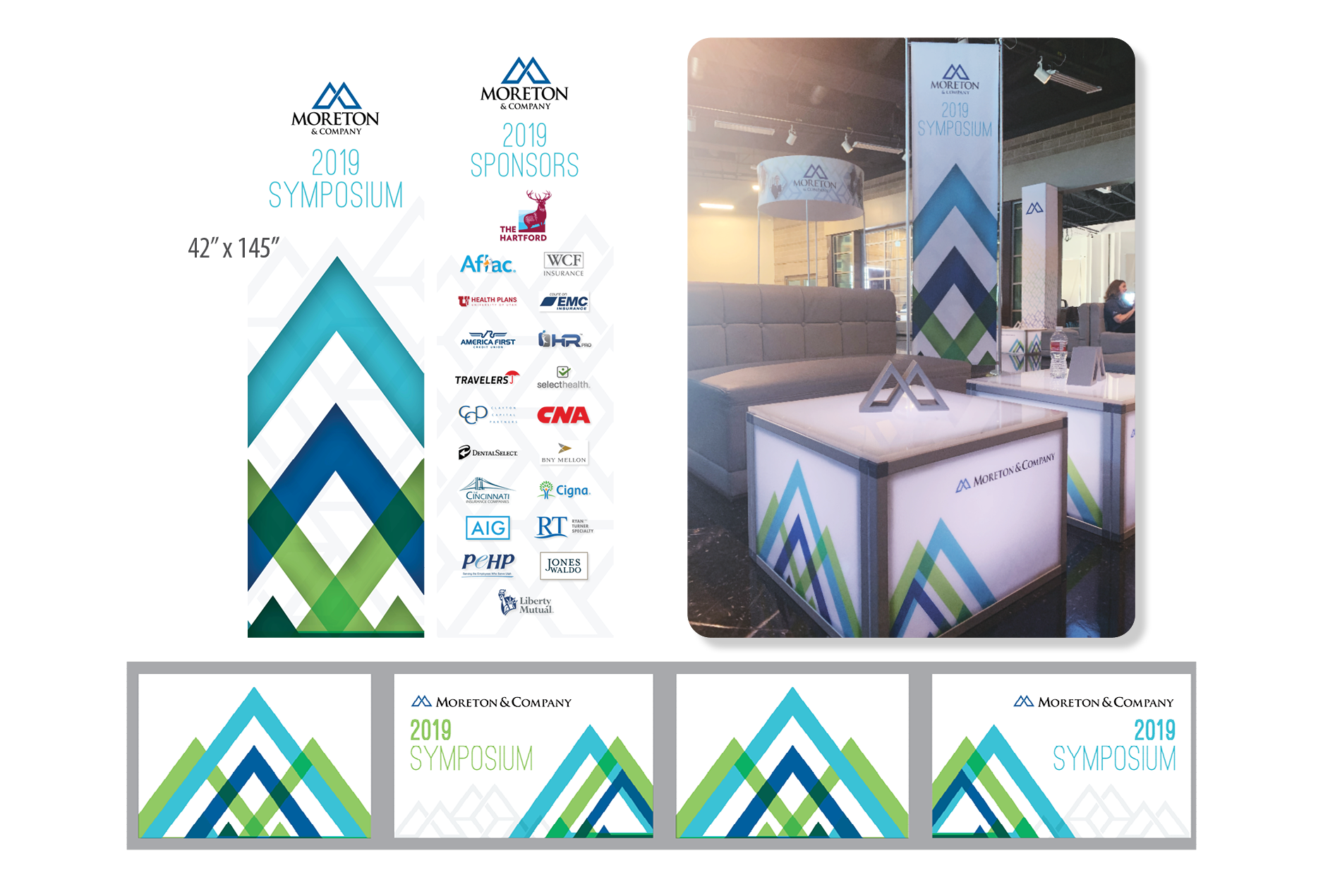 Venue & Event Design Event App + Website Design (Cvent) Seminar/Webinar Marketing MaterialsPDF invite, web + social media banners, e-marketing follow-up survey. Silicone Slopes Booth Design Aviation Trade Show Sign Bee’s Stadium Banners: 12’ x 3’ Symposium Venue + Marketing 2022 Moreton & Company Symposium - Utah Cultural Celebration Center 2019 Symposium - Exterior Wall Panel 2019 Symposium - LED Tables + Sponsor Signs 2019 Symposium - Elevator Sponsor Signs Trade Show Pull-Up Banners
